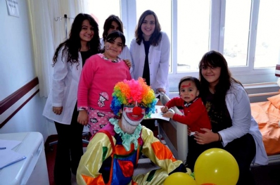 ADÜ Çocuk Sağlığı ve Hastalıkları Ana Bilim Dalı, çocukları eğlendirerek tedavi ediyor. Hasta minikleri çocuk oldukları unutturmadan, hayattan koparmadan ve en önemlisi hastaneyi evi gibi benimseyerek gülen yüzlerini soldurmadan tedavi eden Hastane, çocukları renkli etkinliklerle sadece bedenen değil ruhen de iyileşme sağlıyor. Kimi zaman resim yapan, müzik dinleyen kimi zaman ders çalışan kimi zaman ise odalarındaki televizyondan çocuk programlarını izleyebilen çocuklar, palyaçolarla oyunlar oynayıp yüz boyama etkinliklerine katılıyor.
