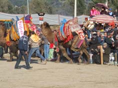 Yılmaz Ölmez Gerçek Gazetesi Aydın"ın Sultanhisar İlçesi"ne bağlı Atça beldesi Kurban Bayramı"nın son günü düzenlenen geleneksel deve güreşleriyle renklendi. Ege, Marmara ve Akdeniz Bölgeleri"nden 120 devenin kıyasıya mücadele verdiği güreşlerde, kimi zaman en iddialı gösterilen şampiyon develer güreşmek yerine alanı kaçarak terk etmeleri hayal kırıklığı yarattı. Kemikli ve Fernas isimli develerin güreşinde Kemikli güreş yerine kaçmayı tercih edince, seyircilerde büyük heyecan yaşadı. Sultanhisar Kaymakamı Orhan Mardinli, Atça Belediye Başkanı Osman Yıldırımkaya, Yenipazar Belediye Başkanı Zafer Savcı, Kuyucak Belediye Başkanı Ali Ulvi Akoğlu,Bağarası Belediye Başkanı Ünal Yeşil, AKP"li İl Genel Meclis Üyesi İsmail Hakkı Eser, DP İl Genel Meclis Erdinç Çeliksoy ve 7 bin civarında güreş sever Atça güreşlerini izlediler. Belediye .aşkanı Yıldırımkaya, Bu yıl rekor izleyici rekoru kırdık derken, alanı dolduran binlerce kişi bahardan kalma havanın tadını adeta piknik yaparak çıkardılar. Yine ızgaraların yakıldığı, kadehlerin tokuşturulduğu Atça güreş alanında vatandaşlar iddialı develerini güreşlerini büyük bir dikkatle izlediler. Kamyon kasaları ve römorklara çıkan bazı vatandaşlar güreşleri kuş bakışı izlerlerken, davul-zurna sesi Atça alanını bayram havasına çevirmeye yetti. Güzel güreşlerle birlikte binlerce kişi çiftte bayram keyfi yaşadılar. Belediye başkanı Yıldırımkaya, Konuklarımıza en iyi şekilde ev sahipliği yaptıysak ne mutlu bize. Havada çık güzeldi. Güreşleri derneğimiz yararına düzenledik. Fakat Üniversite inşaatımıza katkı koyacak olan arkadaşlarımızda var dedi. Yenipazar belediye başkanı Zafer Savcı ise, Yüzyıllardır süregelen gelenek sayesinde bölgemiz Kış turizmi yaşıyor. İnsanlar güreşler sayesinde bir araya geliyorlar dedi.