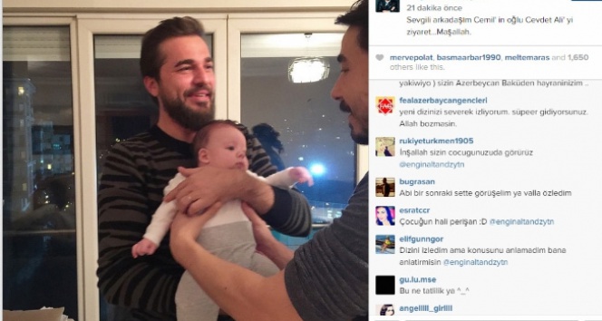 TRT1’de yayınlanan reyting rekortmeni "Diriliş Ertuğrul" dizisinin başrol oyuncusu Engin Altan Düzyatan, bir arkadaşını ziyaret etti. Hayatını geçtiğimiz yıl sosyetenin önemli isimlerinden Neslişah Alkoçlar ile birleştiren ünlü oyuncu ziyarete ilişkin bir fotoğrafı da sosyal medyada hayranlarıyla paylaştı. Fotoğrafta Düzyatan’ın arkadaşının oğlunu kucağına aldığı görüldü. Bu fotoğrafla birlikte kafalarda "Ertuğrul Gazi çocuk mu istiyor?" sorusu oluştu. Hayranları ise ünlü oyuncuya "İnşallah sizin çocuğunuzu da görürüz. Darısı başına :)" temennisinde bulundu.