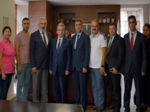 Maliye Bakanlığı Gelir İdaresi Başkan Yardımcısı Mahmut Sütçü ve Aydın Vergi Dairesi Başkanı Cemil Musevitoğlu ve Aydın Vergi Dairesi Müdürleri, Aydın Vergi Dairesi Grup Müdürlerinden oluşan bir heyet Aydın Ticaret Odası Başkan Yardımcısı Coşkun Cerit’i ziyaret etti.