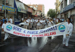 (İHA) - Söke 4. Pamuk Festivali ve Kurtuluş Etkinlikleri kortej yürüyüşü ile başladı. Söke Belediye Meydanı'ndan başlayan kortej yürüyüşü, Söke'nin İstasyon Caddesi'nden devam ederek Tarım Fuarının kurulduğu Söke Kapalı Pazaryeri alanında son buldu.