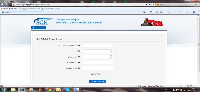 1- https://esgm.sgk.gov.tr/Esgm/LoginT.action linkine tıklayarak aşağıdaki bilgiler girilir.
