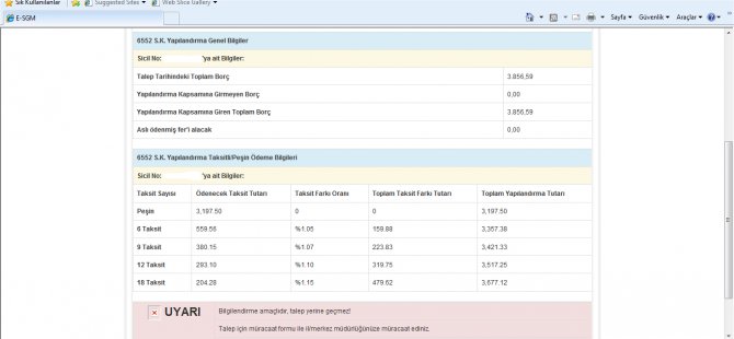 3- DAHA SONRA AŞAĞIDAKİ GİBİ YAPILANDIRMADAN ÖNCEKİ BORCUNUZU VE DİĞER SEÇENEKLERİ GÖREBİLİRSİNİZ.