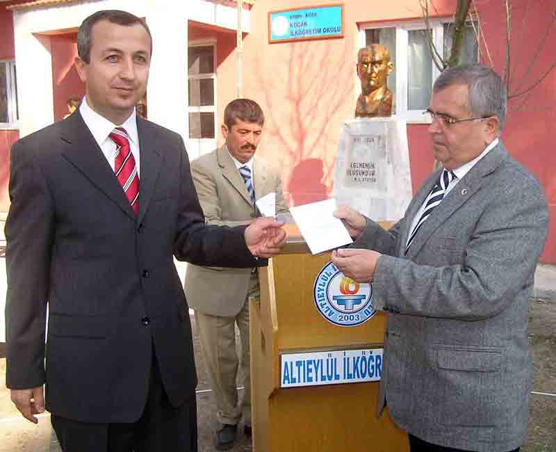 KÖŞK KAYMAKAMI İSMAİL SOYKAN TOPLANAN 16 BİN YTL.'Yİ AYDIN VALİSİ MUSTAFA MALAY'A TAKDİM ETTİ