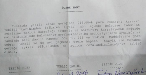 Vatandaşa, HAFRİYAT DÖKMEYE TEŞEBBÜS cezası kesilmiş!