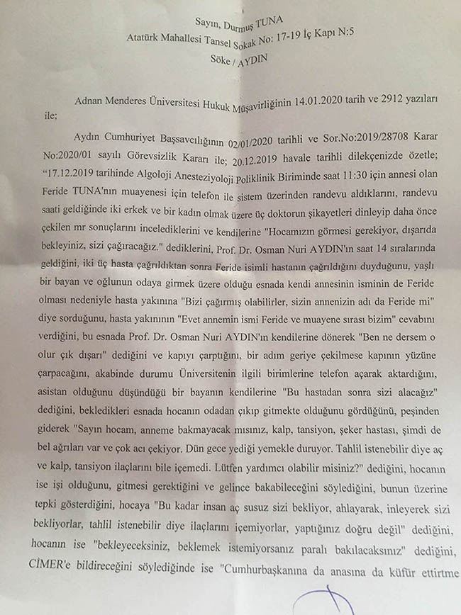 Bu talihsiz olaydan da anlaşıldığı üzere; Prof. Dr. Osman Nuri Aydın kaynaklı hasta ve hasta yakınlarının benzer mağduriyetleri artarak devam etmiş.