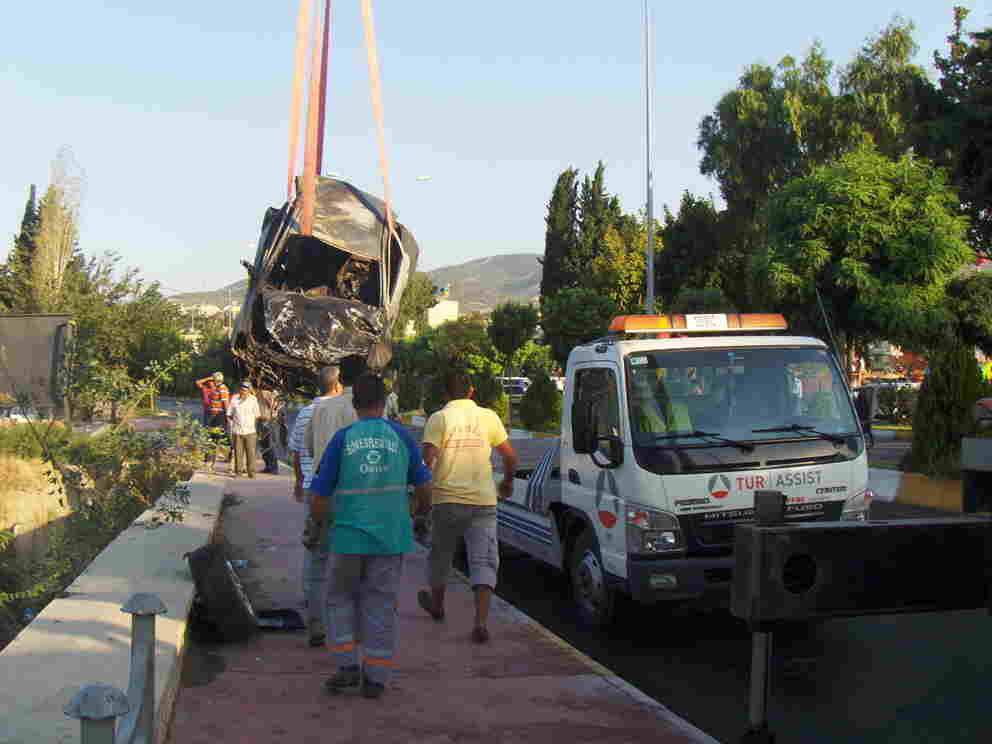 Kazada Rasih Azbazdar’ın kullandığı araç hurda yığını haline gelirken, aracın alev aldı ve benzin deposunda patlama meydana geldi. Gürültü ile uyanan Yenikent Mahallesi sakinleri yardıma koşarlarken, bazı vatandaşlar yangını kendi çabaları ile söndürmek istediler.