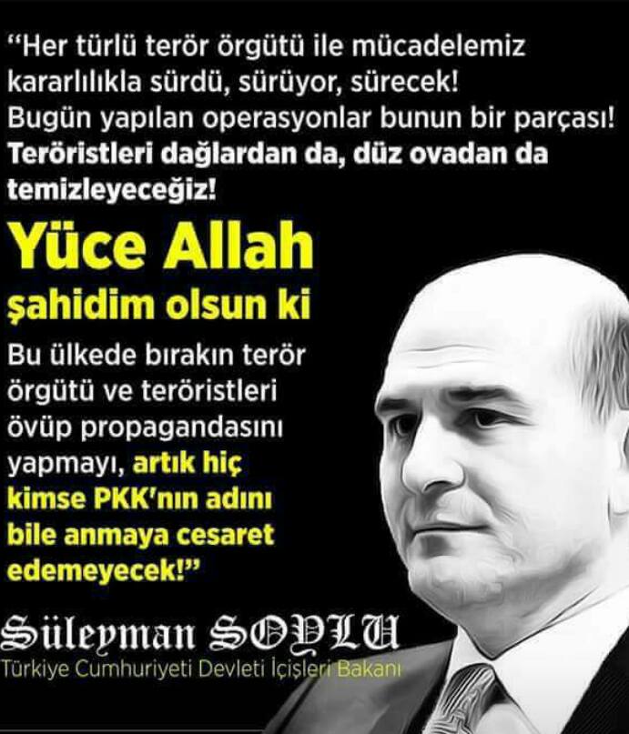 İçişleri Bakanı Süleyman Soylu’nun, “...artık hiç kimse pkk’nin adını bile anmaya cesaret edemeyecek...” söylemi doğru çıkar da beni eleştirenlere karşı mahçup olmam...